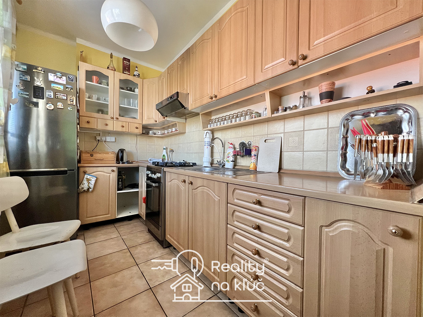 Kuchyňa: kuchynská linka, digestor, sporák a chladnička s mrazničkou.